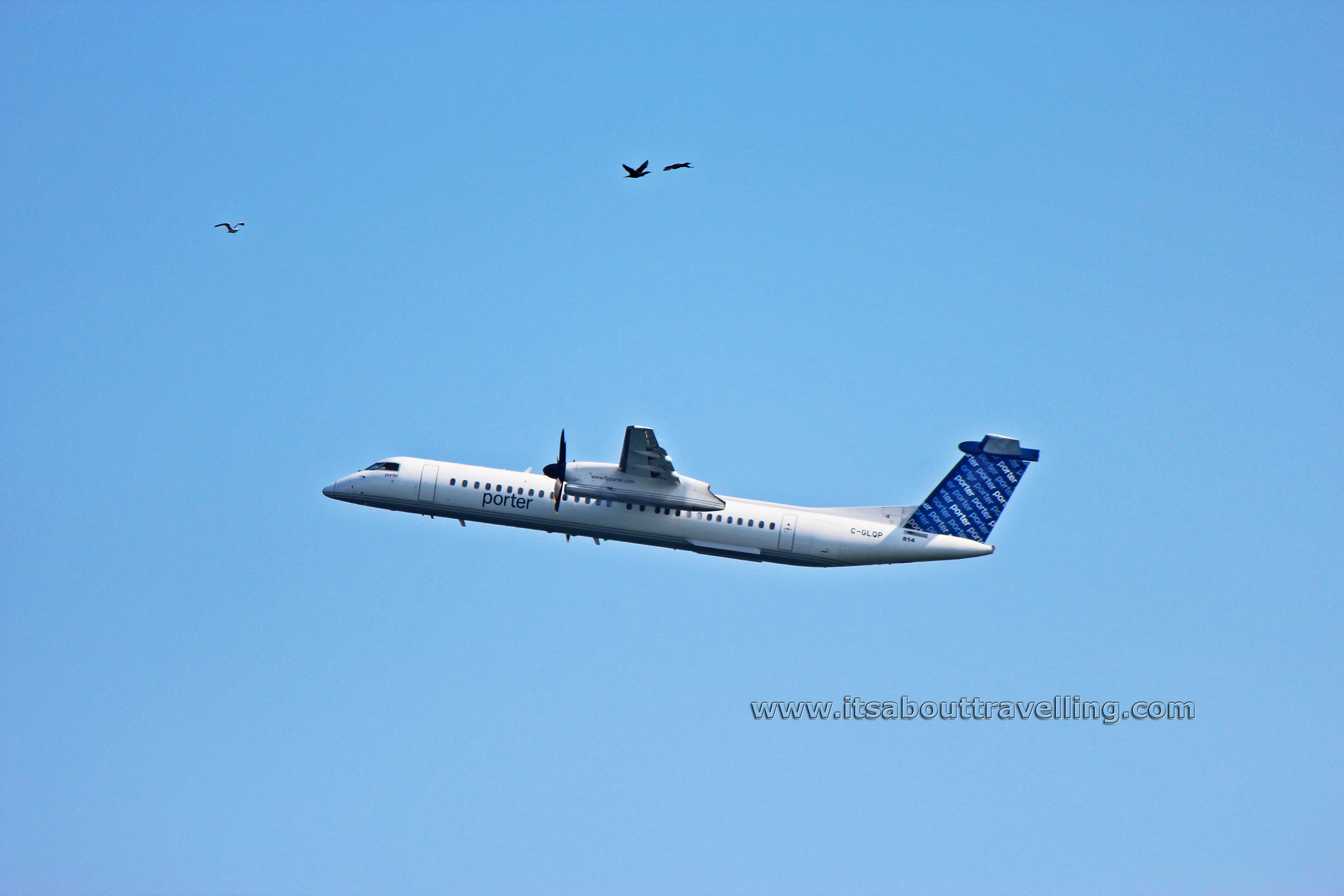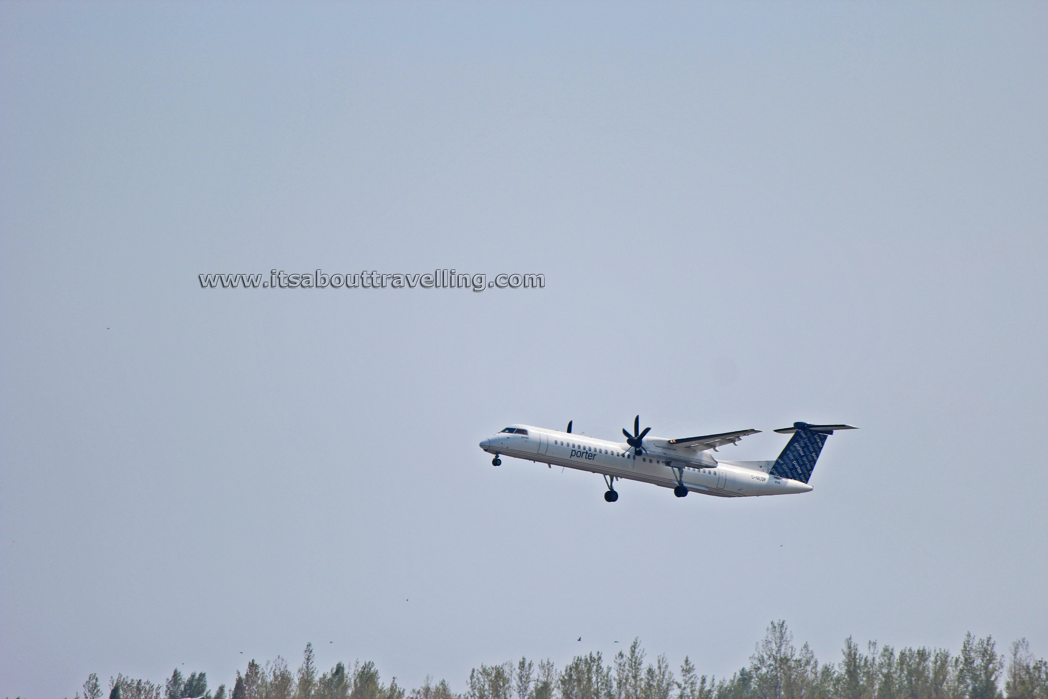 The images below were taken in May, 2013. This Bombardier DHC-8-402Q (De Havilland Dash-8) is taking off from Billy Bishop Toronto City Airport (YTZ). The registration number on the airliner is C-GLQP.