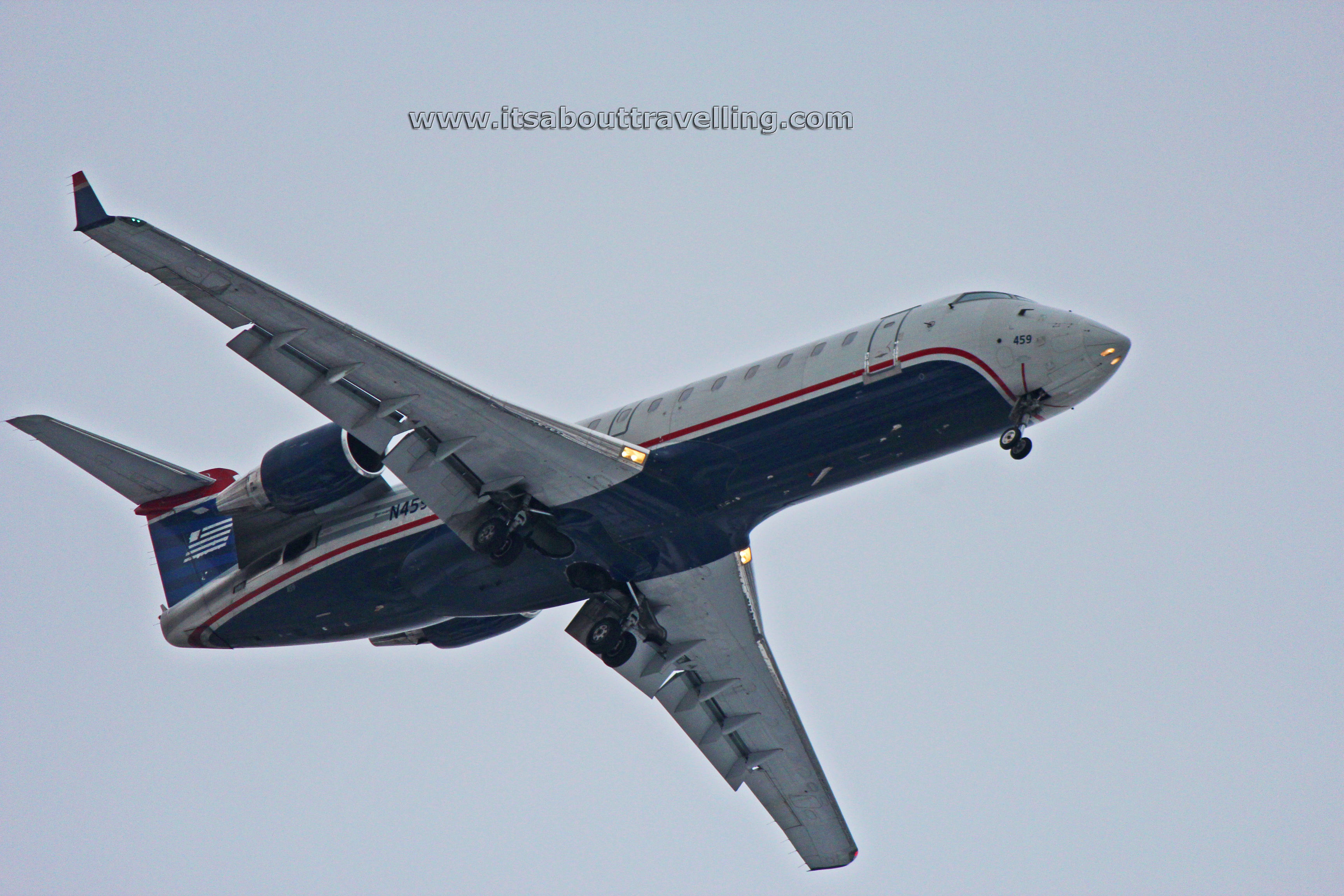 The below images were taken at Toronto Pearson International Airport in February, 2014. This airliner is a Bombardier (Canadian Regional Jet) CRJ-200ER belonging to U.S. Airways. Registration number on this plane is N459AW.