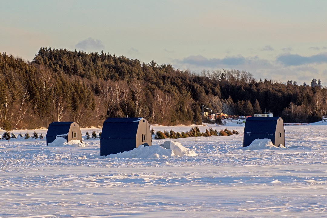The photos were taken on the shores of the Orangeville Reservoir in Orangeville, Ontario, Canada. It is better known as Island Lake Conservation Area. The ice fishing huts seen in some of the photos are owned by the conservation area and are available to rent. In fact, it was those images that were the main purpose of my visit. I figured it would be a great add to my stock photography portfolio…