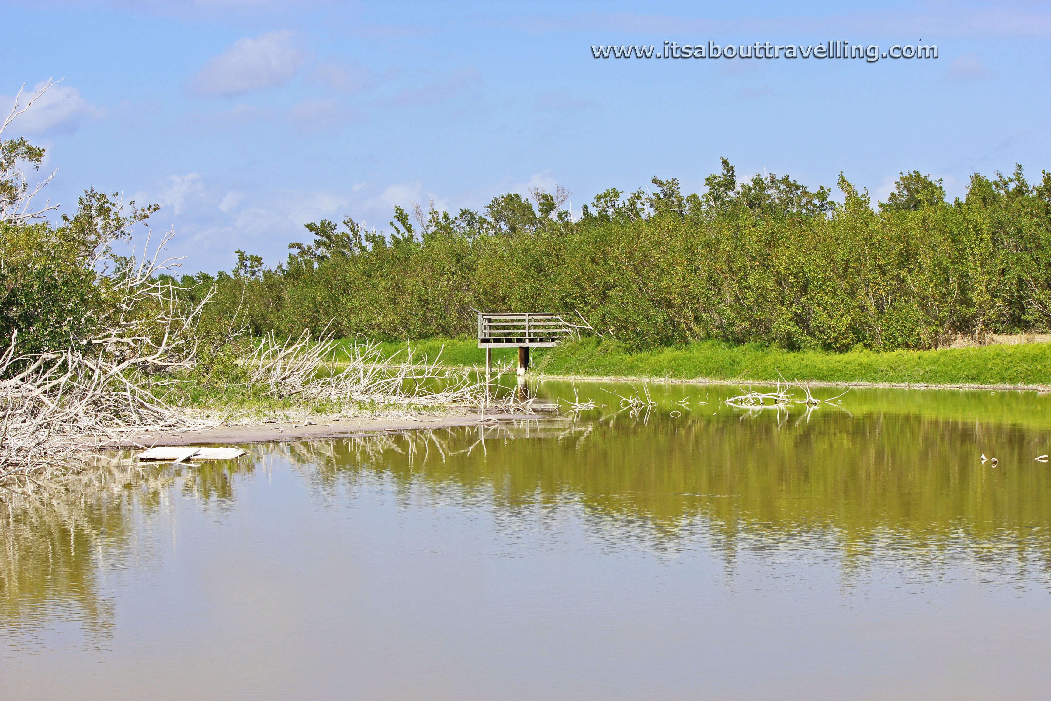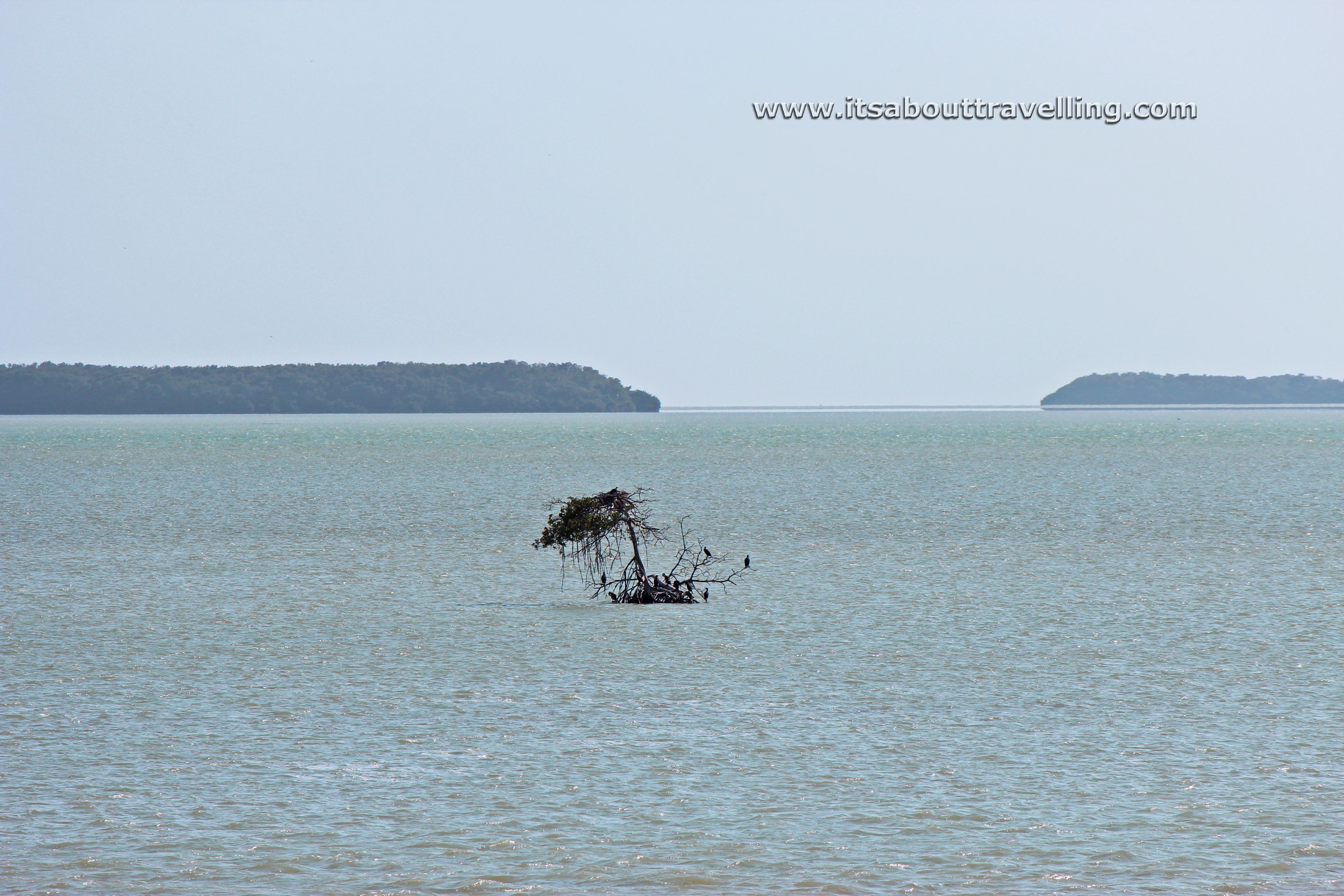 This tiny island is nothing more than a tree growing in shallow water. Yet, it is refuge for many birds – several visible in this image.