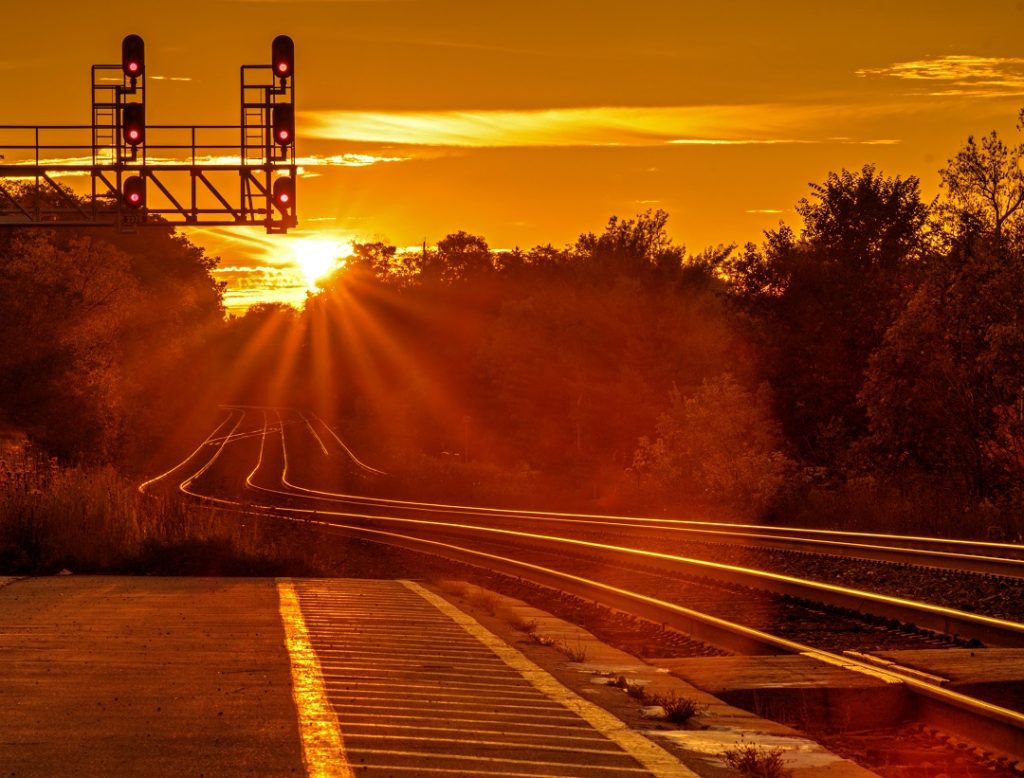 Normally, this wouldn’t be a big deal and we’d leave with everyone else. But, the photographer in me knew to check the sunset time and position. It was expected to set at 6:30 and directly down the tracks.