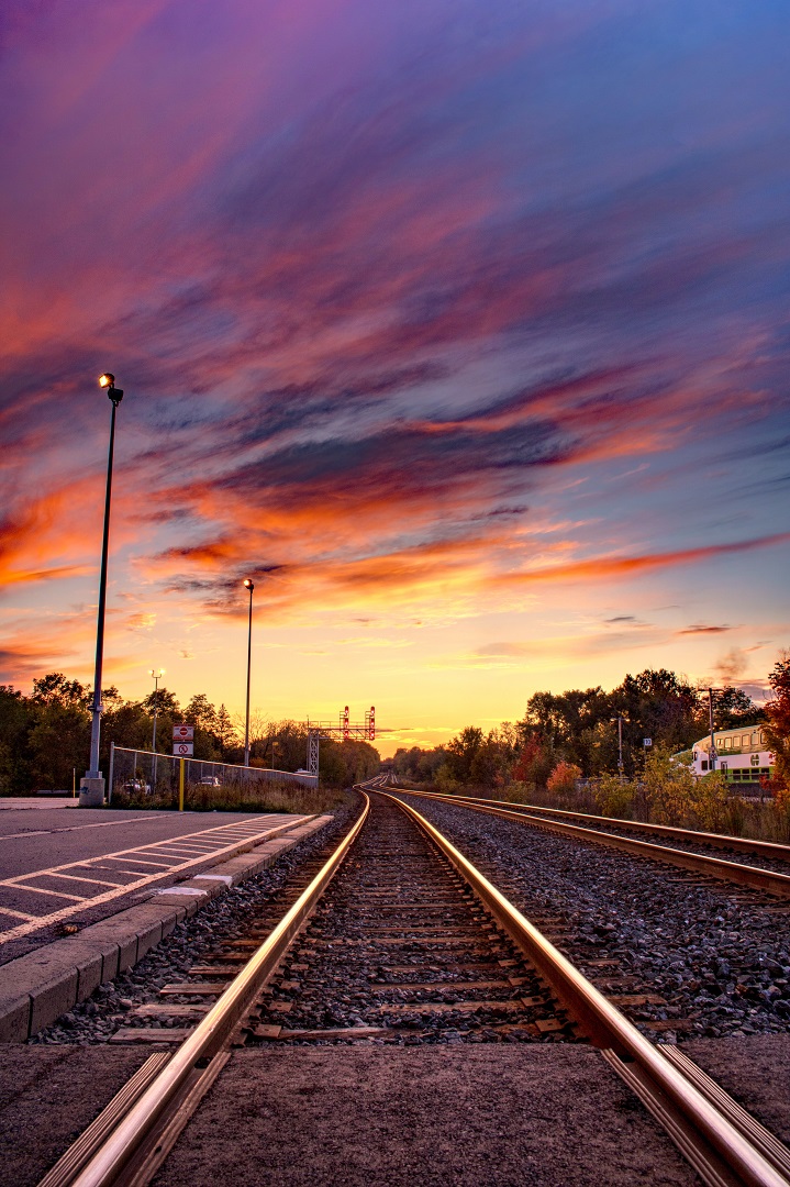 Well, the sunset, although short-lived, was quite spectacular. However, it seems the VIA train was either cancelled or extremely late. So, that element was missing but I captured a few of, what I thought, were some pretty decent photos.