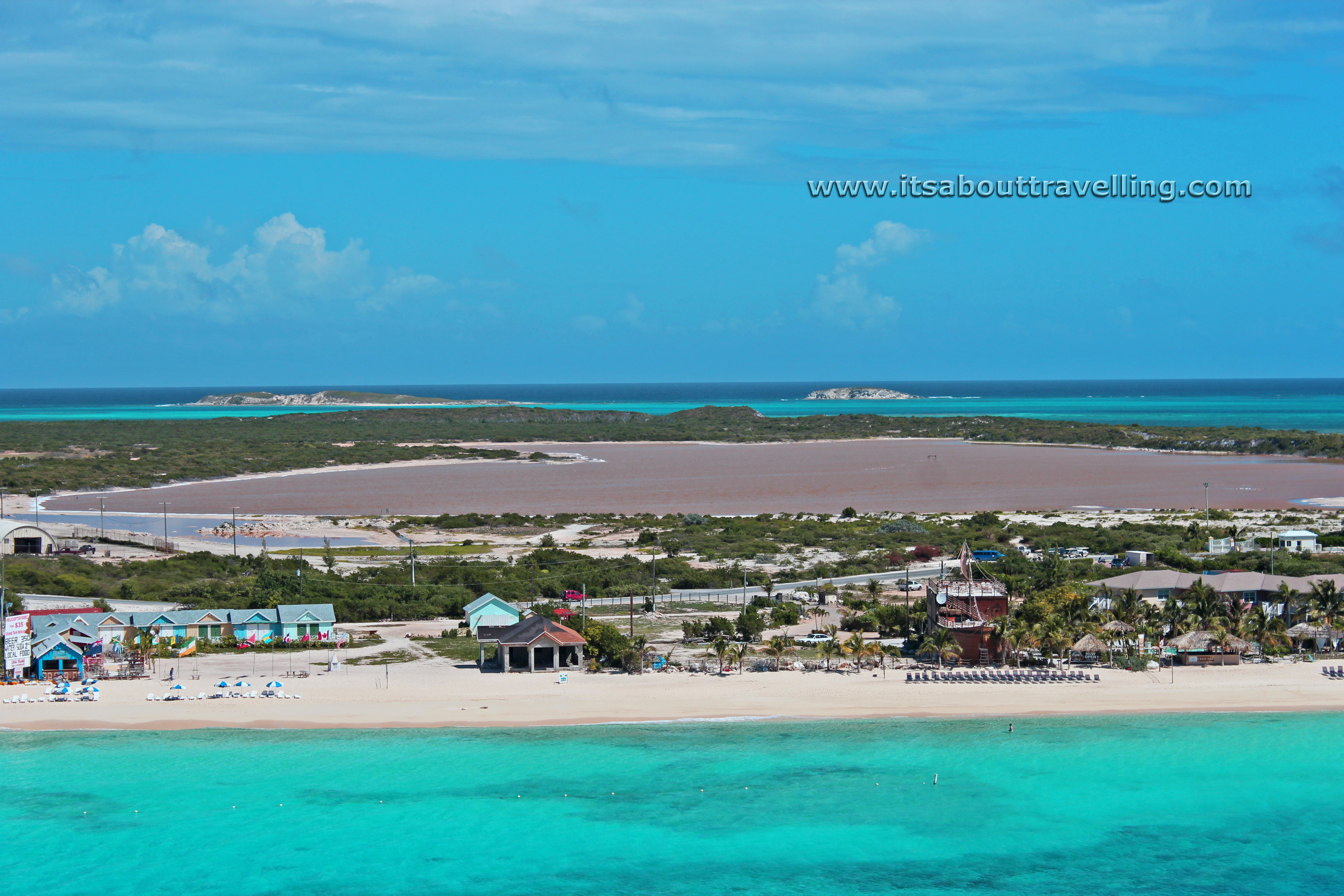 Grand Turk Island is the largest of the Turks Islands in Turks and Caicos. Despite that designation, Grand Turk is just 18 square kilometres, or just under seven square miles in area. As seen in some of the pictures below, from Deck 16 on the Ruby Princess, you can see clear across this flat Caribbean island.