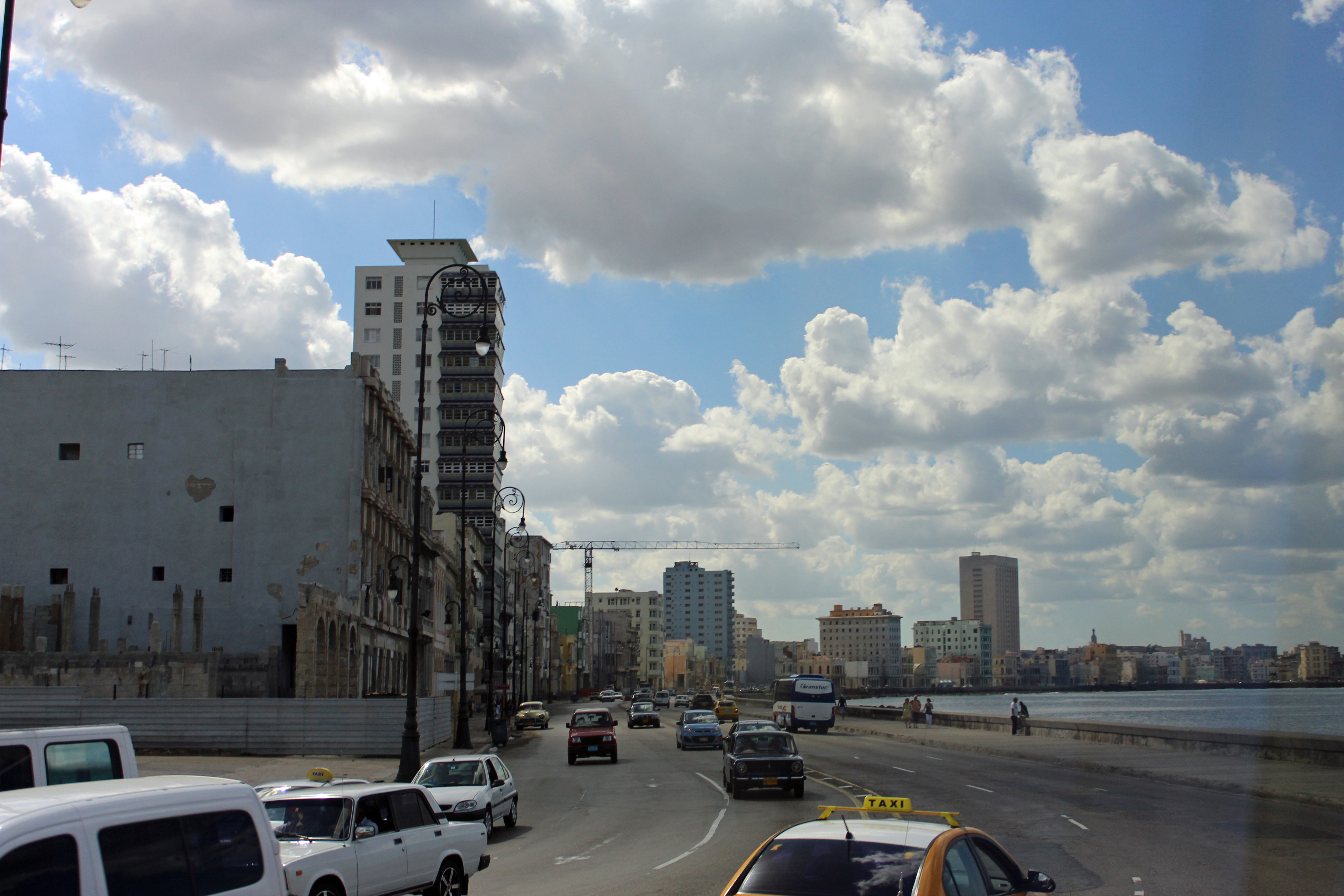 This is view is looking east along the Malecón with the Morro Castle in the background, on the opposite side of the harbour.