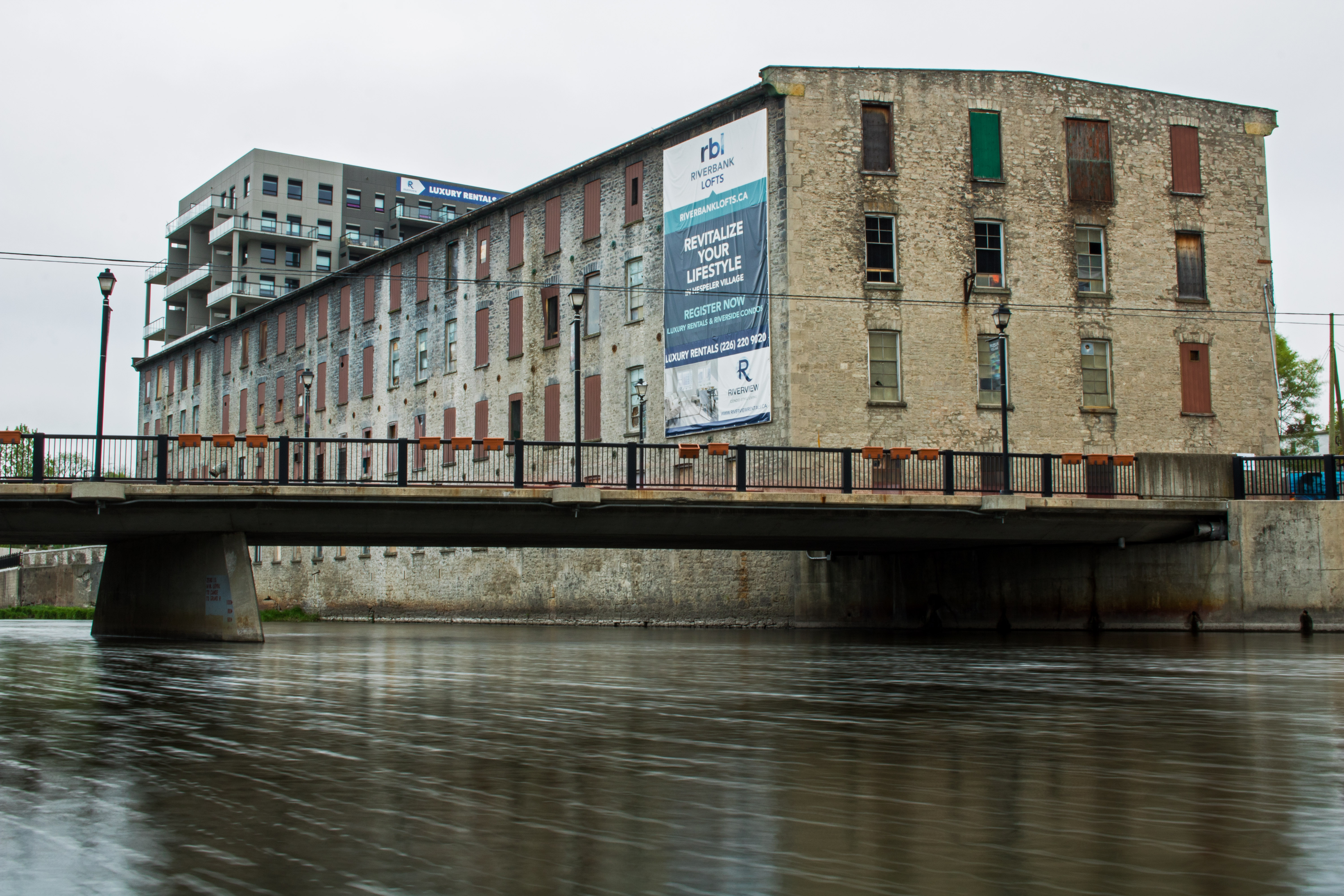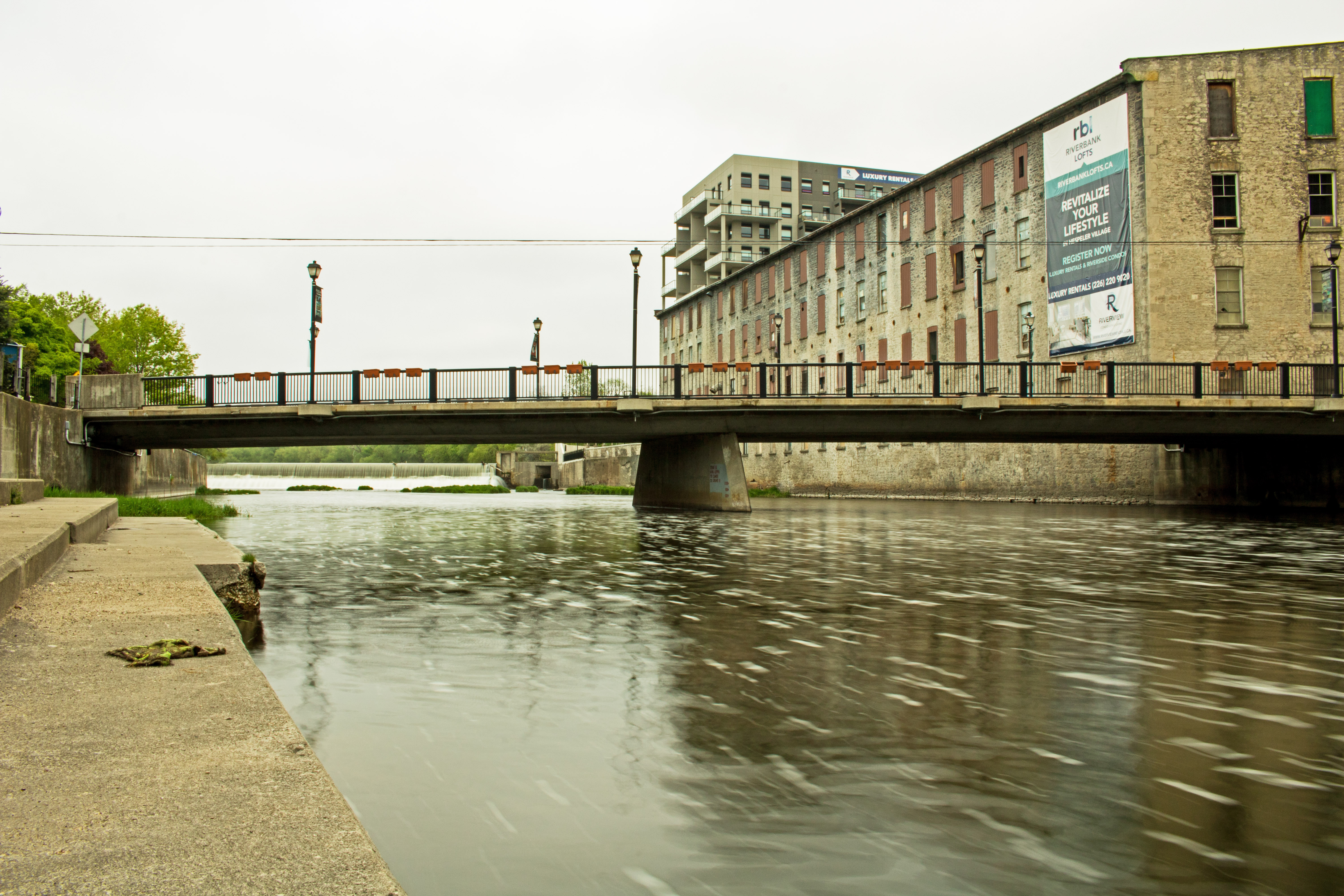 silknit dam hespeler ontario cambridge speed riverIt was not supposed to be overcast. The forecast was for earlier cloud and rain to clear out by the evening. And, where I had been, in Ingersoll, Ontario, that actually happened. However, when I got to Hespeler, a part of the greater Cambridge area, the overcast, bland sky remained. So, I attempted to make lemonade out of those lemons. What I got will not win any awards but came out pretty decent considering the conditions.