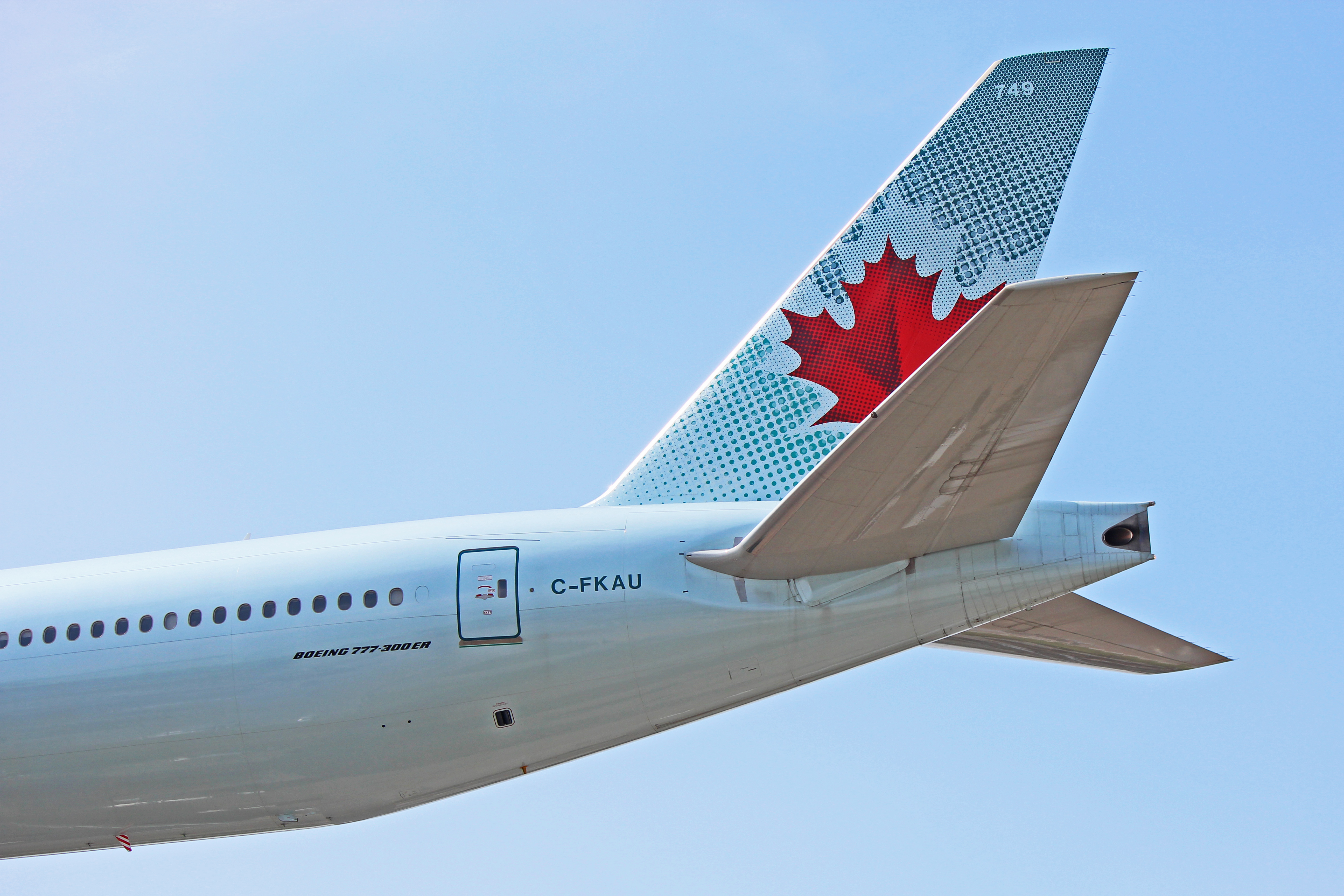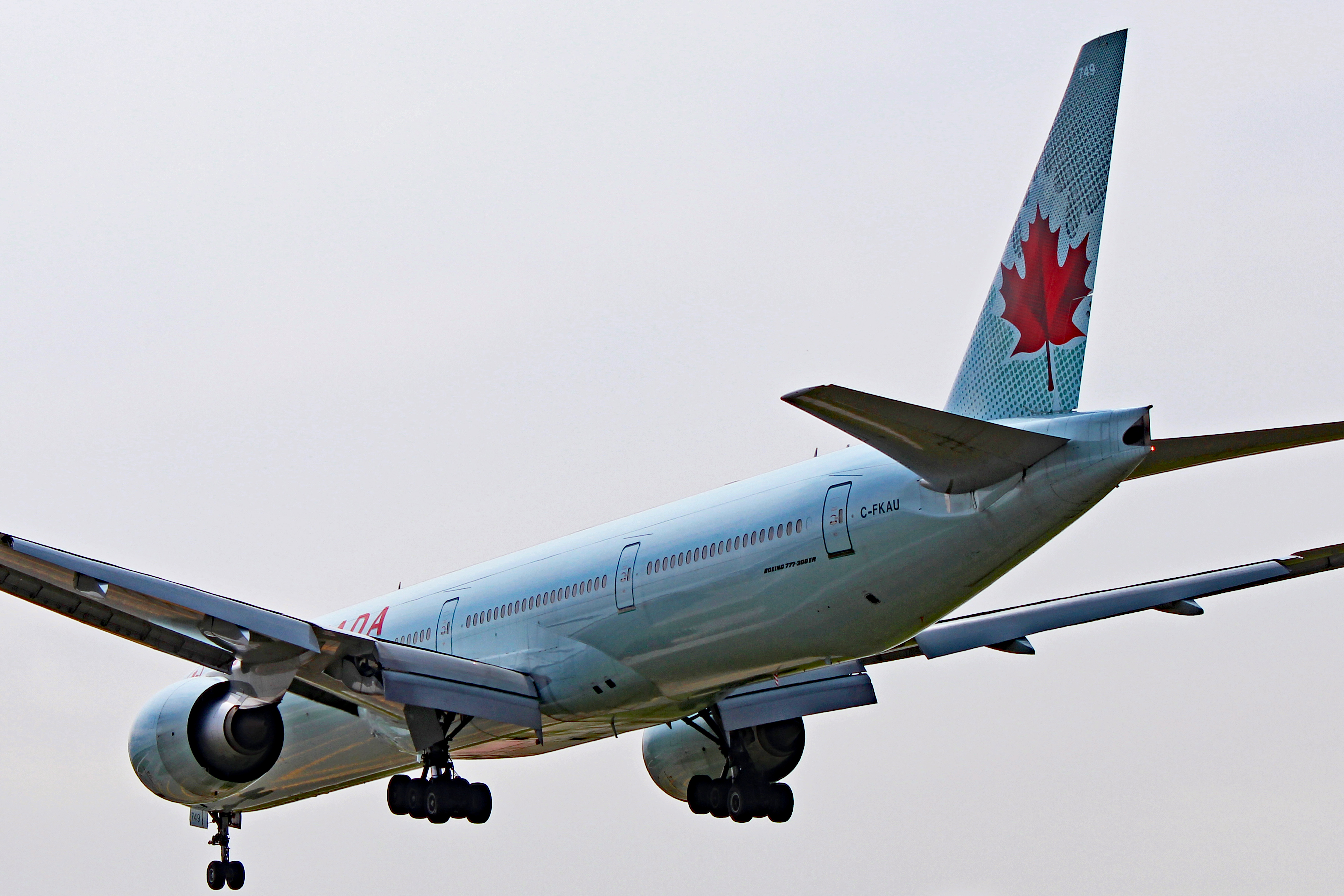 The aircraft is an Air Canada Boeing 777-300ER registered as C-FKAU. It’s still wearing the older version of AC’s livery but should be receiving a new paint job soon.