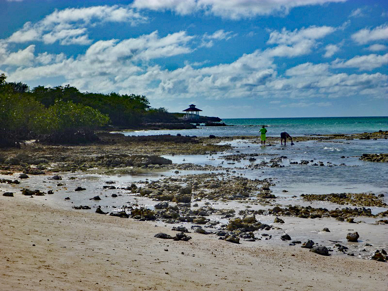 The tides on this beach seem quite drastic. At high tide, the water is right up to the shelters. At low tide, the rocks that were underwater become little islets. There is a restaurant at this beach with seating and two bars. The drink service along the beach is exceptional and the lobby bar could take a few lessons from these guys.