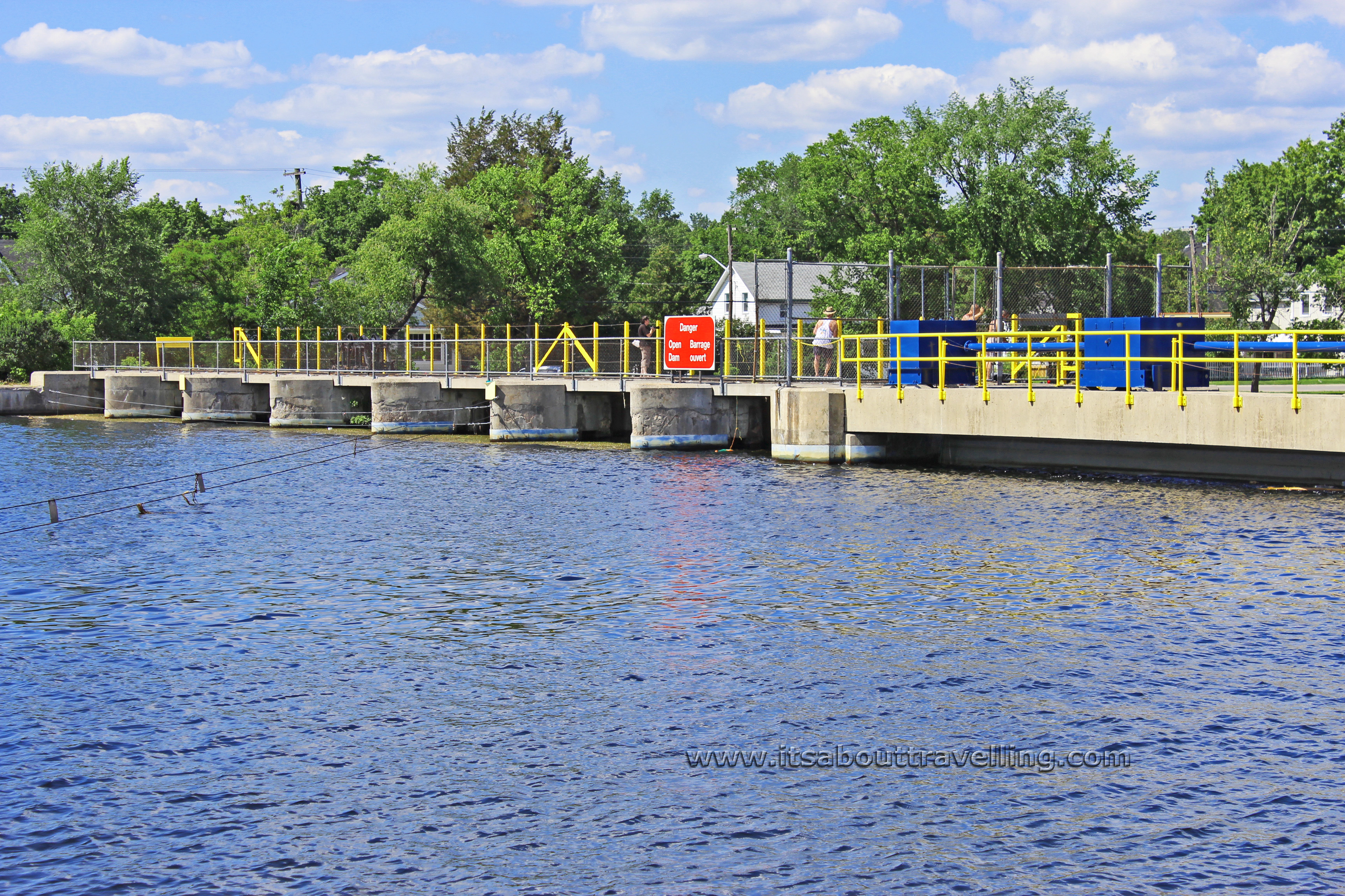 The view above is looking downstream from the dam. This was once a sleepy town but real estate has boomed in the past few decades. Now, the structures that line the canal and out along the shores of both Pigeon Lake and Sturgeon Lake more resemble mansions than summer cottages.