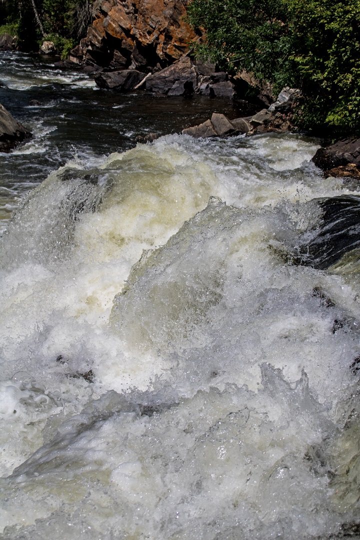 Egan Chutes is a non-operating provincial park. This means there are absolutely no facilities. In fact, there’s hardly a sign. You need to look hard for a narrow two track road going off to the left just before crossing the river. From there, it’s a tight fit to a cramped parking area. Like Burleigh Falls, choose you timing wisely.