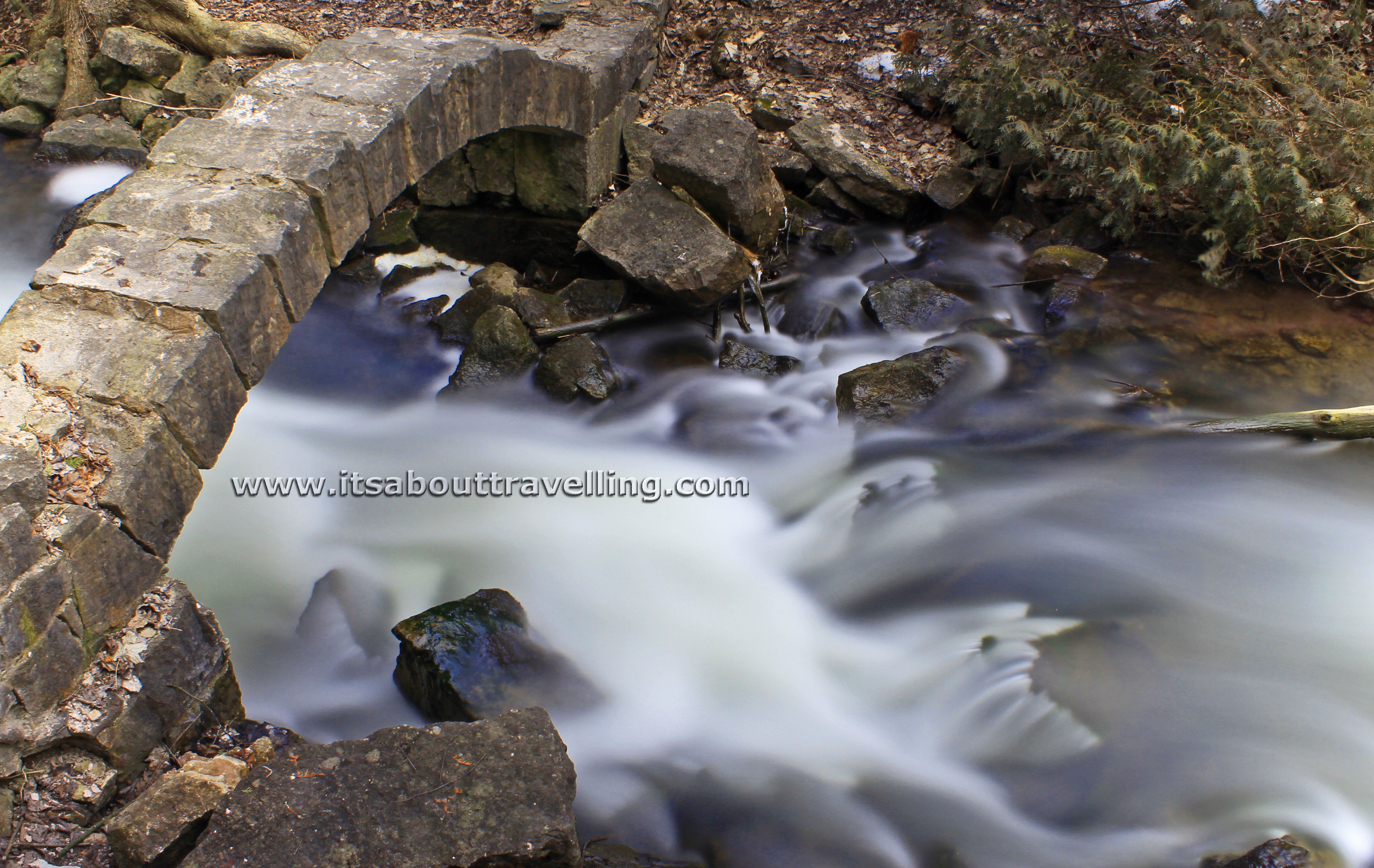Looking upstream from the arch at the babbling Black Creek. There is a walking bridge just downstream from the arch. The bridge is part of the Bruce Trail. There are several side trails in this area that will be a pleasure to explore when the snow and ice have finally gone and the muddy trails dry up.