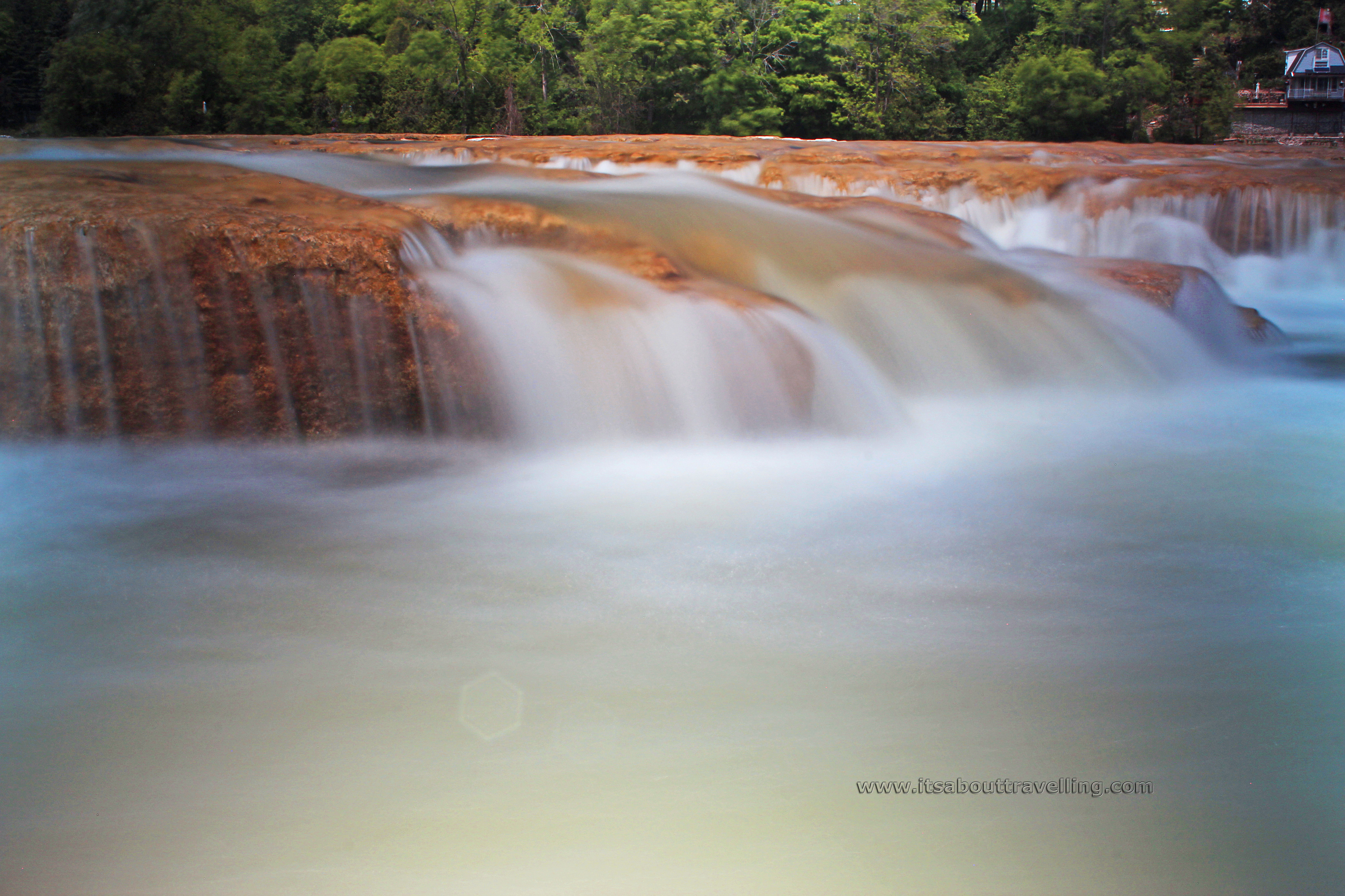 While most of the images here are of the main waterfall section, closest to the campground side of the river, the above image was taken from the far side, looking back toward the main waterfall. There are more views of this area in the video below.