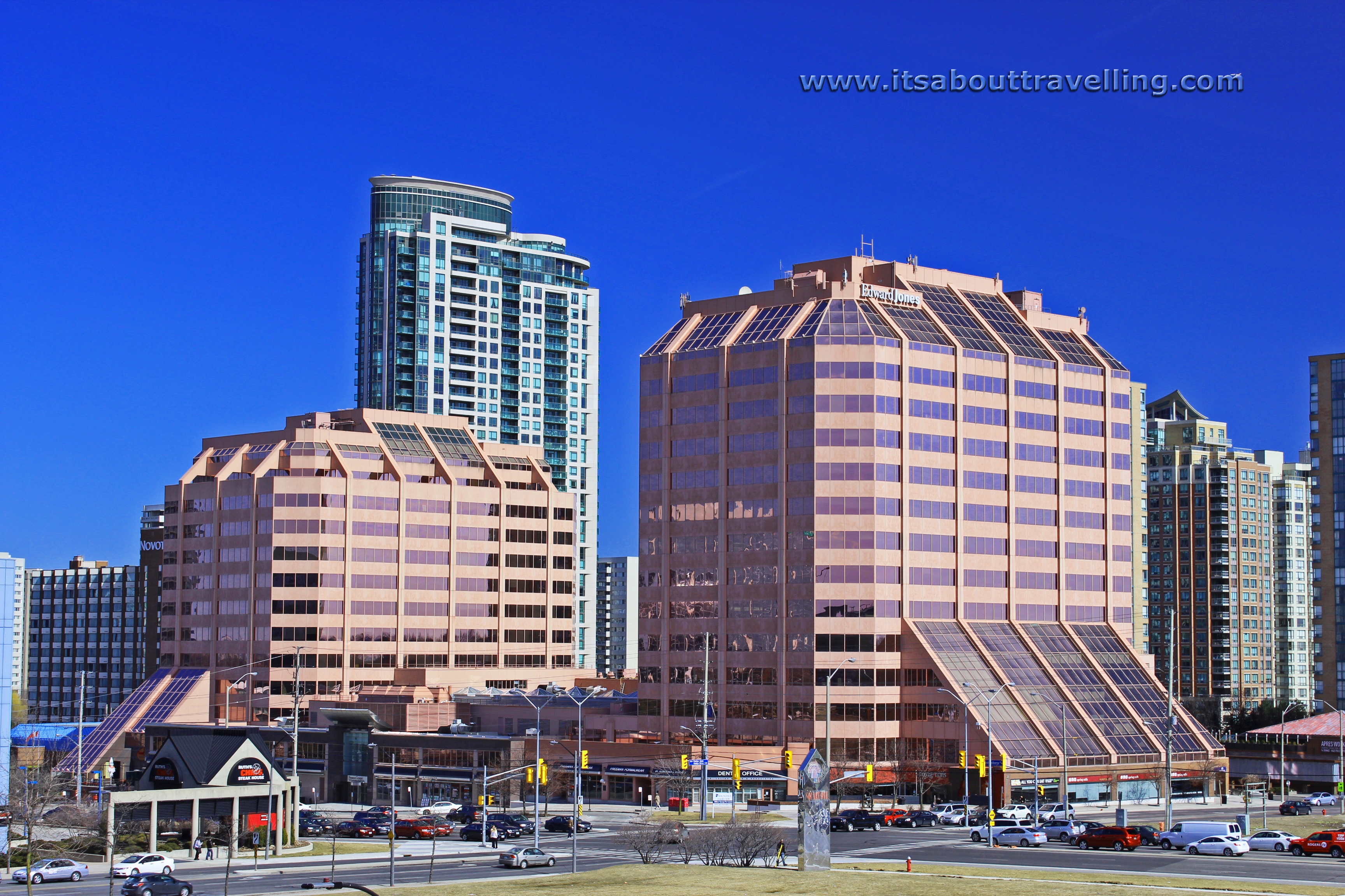 Another look south from Square One at the buildings of Mississauga. The Novotel Hotel to the left has rooms for around $150 CAD per night (cheaper on Expedia).