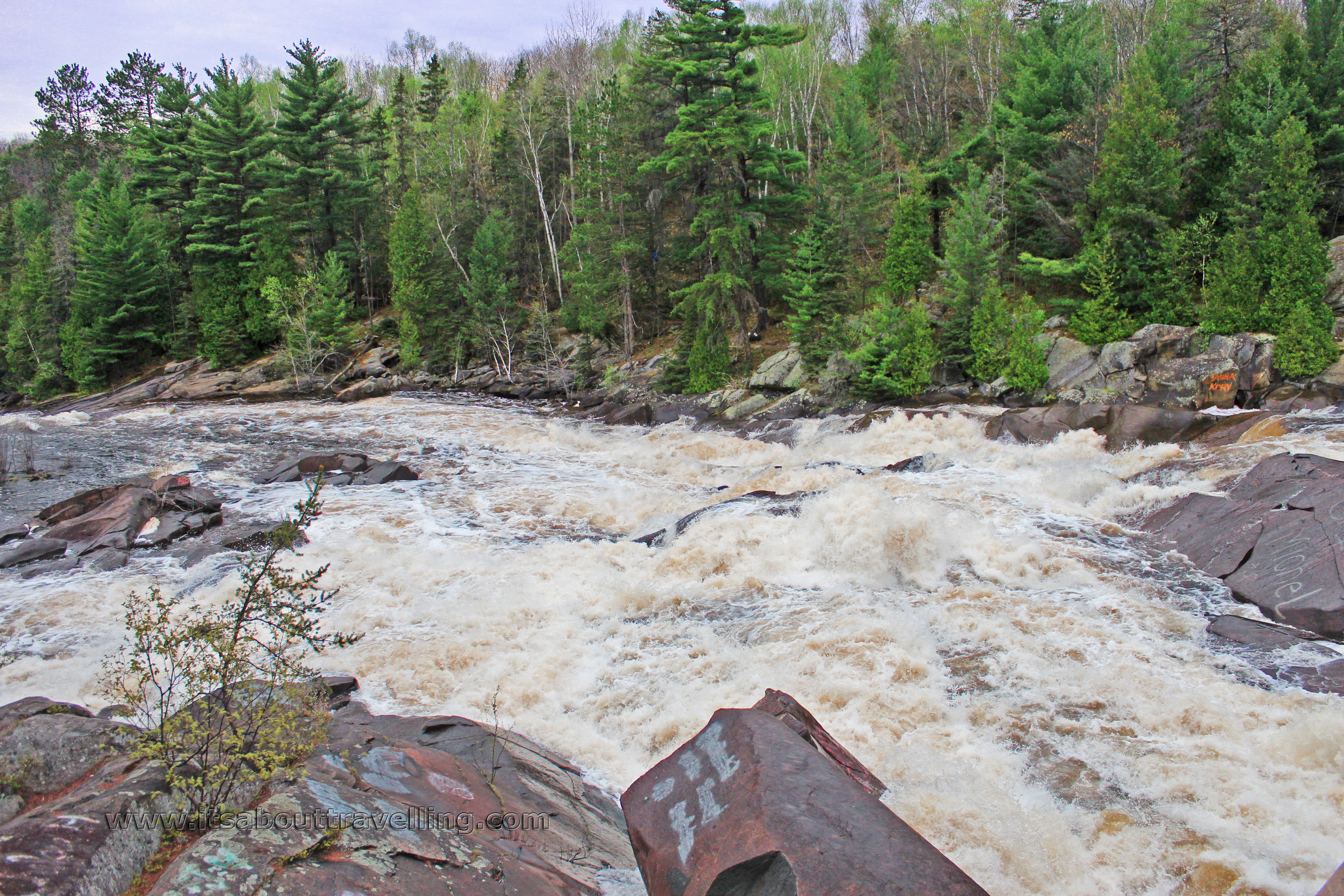 I believe I said this previously but I’ll say it again, Onaping High Falls is one of the top attractions in the area and the fact that it’s void of fees and relatively void of human beings is a huge bonus. It’s meant to be a road side rest stop, just like Muskoka High Falls (link takes you to a video we shot there last summer) – another waterfall that we previously featured here, but in reality you could spend the better part of a day exploring the trails and rocks.