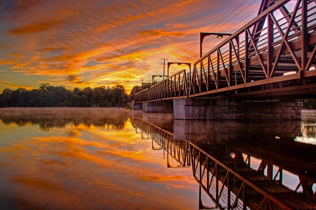 Heading to Peterborough to capture a sunrise has been on my mind for a few summers. I finally headed down the road from our summer spot near Bobcaygeon this past week. It certainly didn’t disappoint. The high clouds were perfect. The Otonabee River was glassy with just enough mist on the surface.