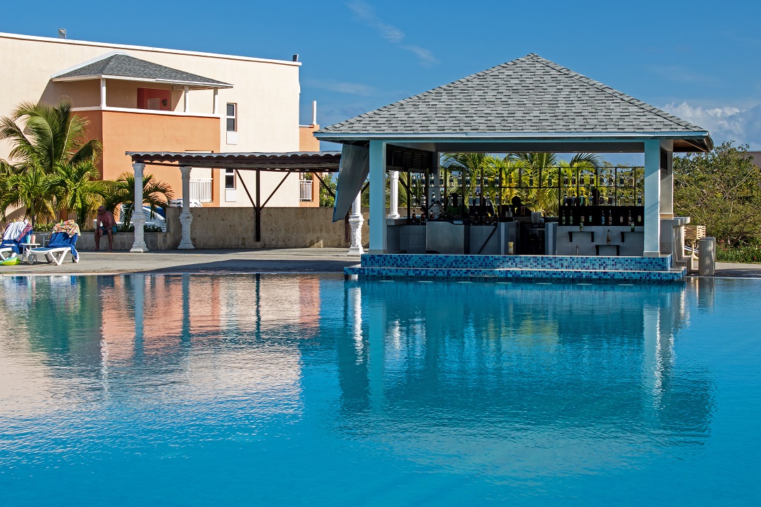 The resort is sandwiched between two larger resorts. To the west is Memories Flamenco Beach Resort. To the east is the Melia Jardines Del Rey.