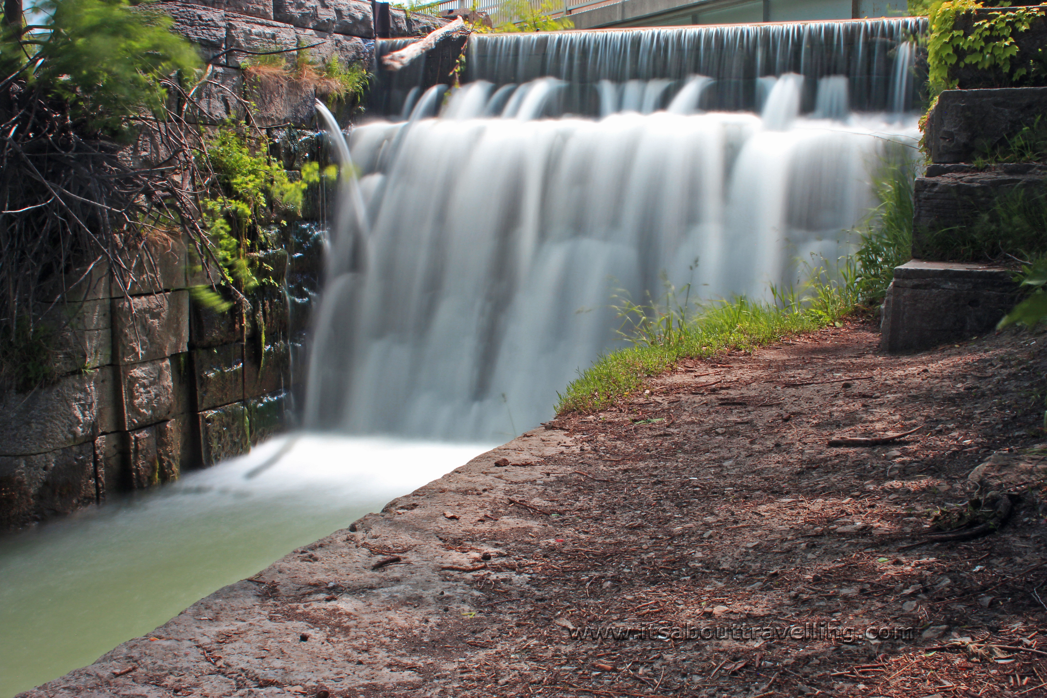 The dam is adjacent to the ruins of the former terminus of the Welland Canal at Lake Ontario. As you can see, the ND filter not only allowed for a water blur effect in the middle of the day, but provides an other-worldly effect from the trees and plants blowing in the wind. This was a 15 second exposure.