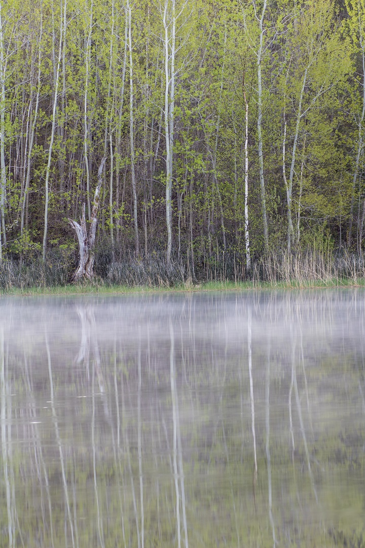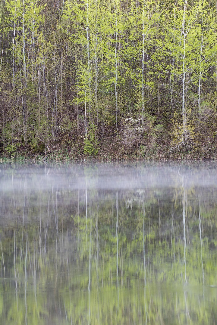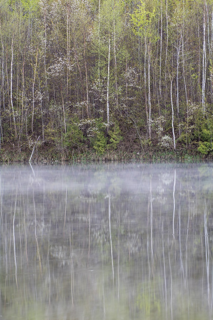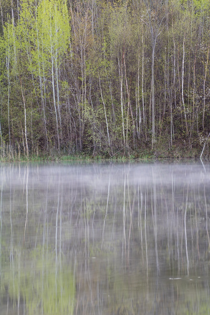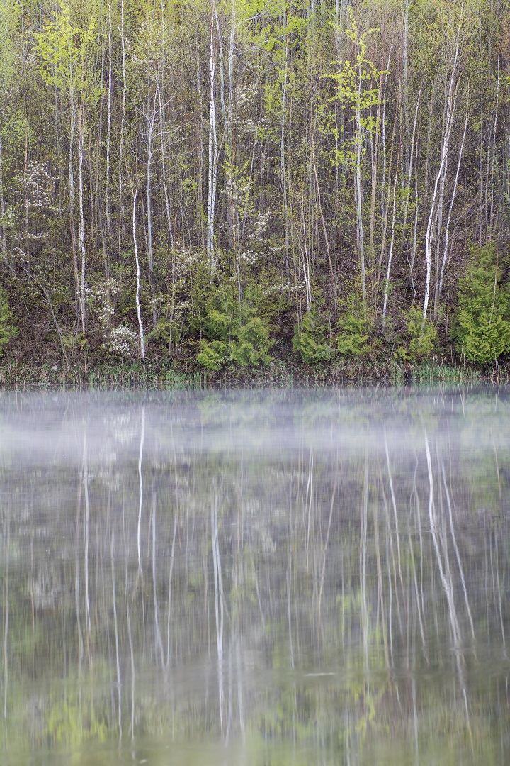 The finished product was created from seven portrait style shots. The location is a small kettle lake at Forks of the Credit Provincial Park. The park is located northwest of the Greater Toronto Area, between Brampton and Orangeville.