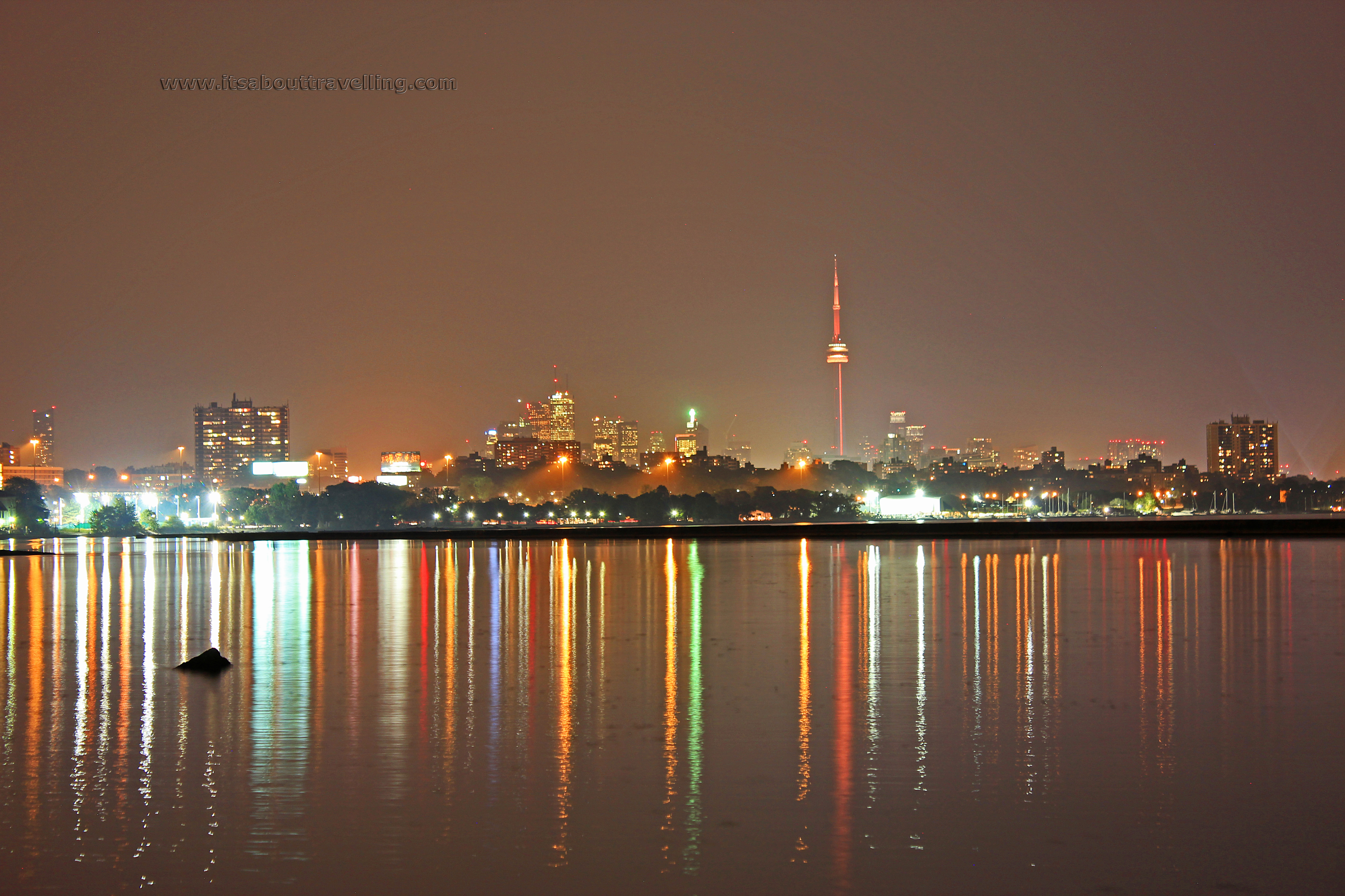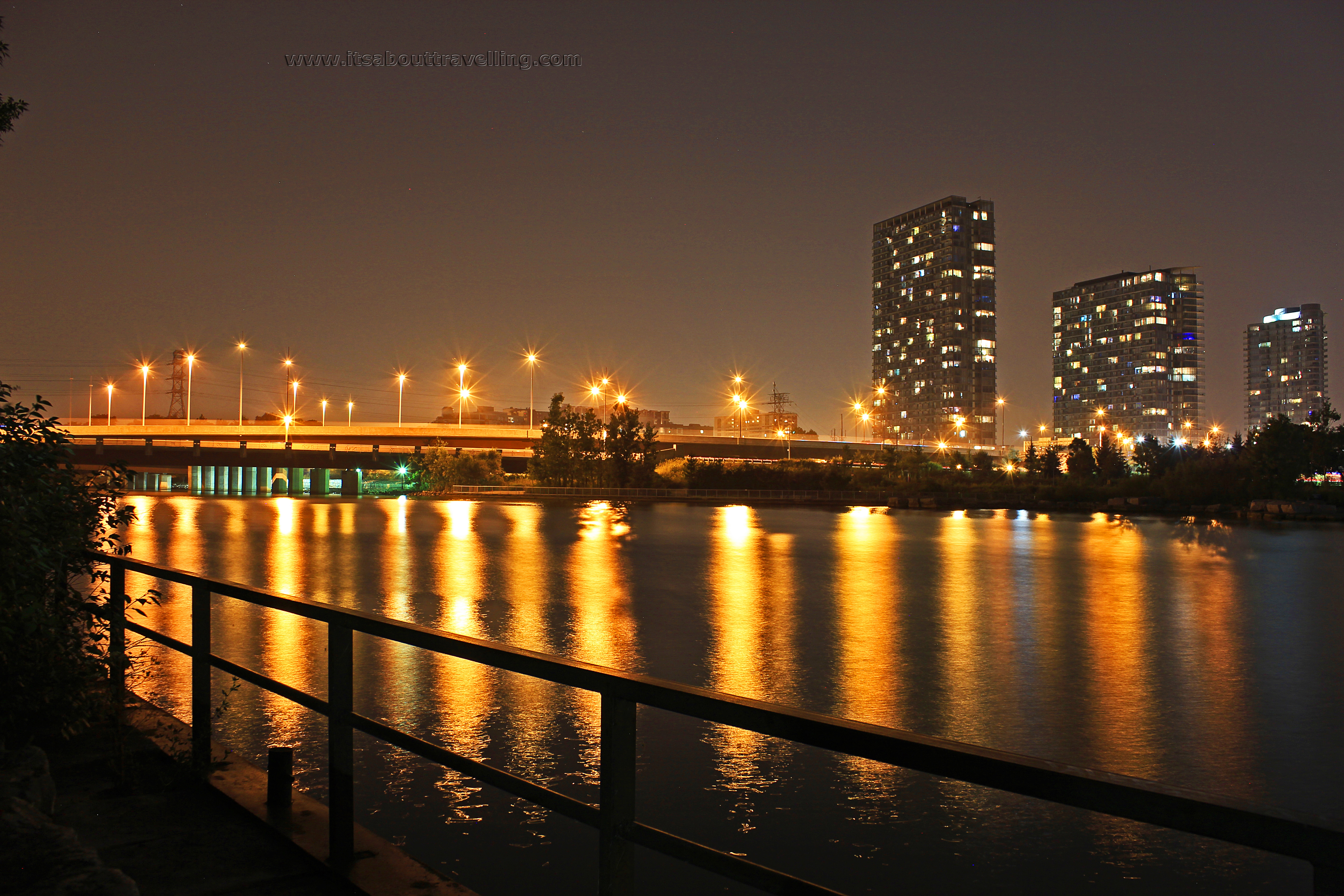 The above image was taken from the shore at Sir Casimir Gzowski Park. This is the first bit of parkway just east of the Humber River. There is well lit parking here and there are no parking fees after 9pm.